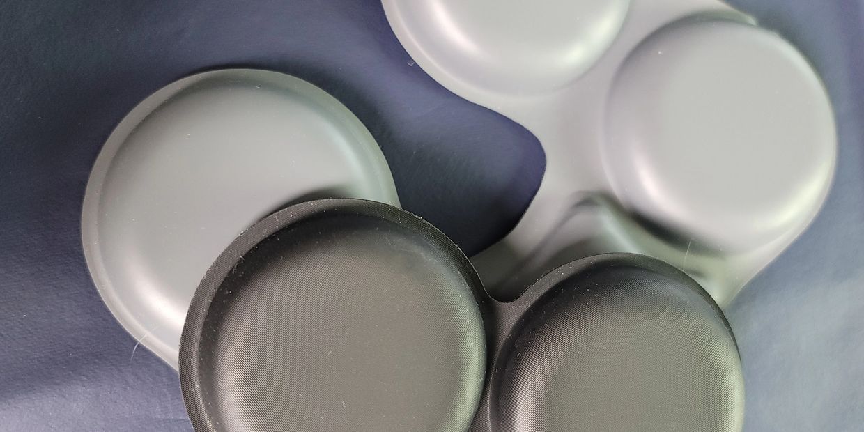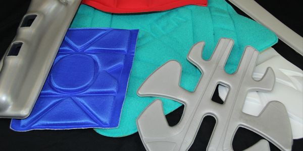 Black ballistic Nylon fabric flame bonded to XLPE Foam and Molded